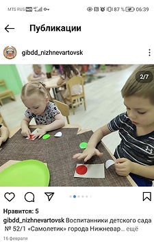 Совместно с инспектором ДПС Хытовым Григорием Юрьевичем провели целевую прогулку с воспитанниками старшей группы по придомовой территории около детского сада. Инспектор указал ребятам на опасные участки дороги при входе и выходе за территорию детского сада, повторили правила безопасного поведения при передвижении воспитанников колонной.